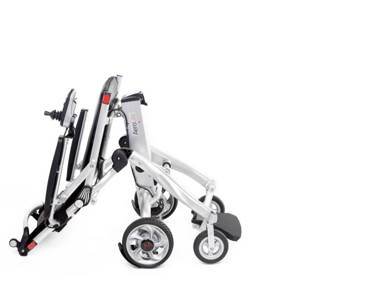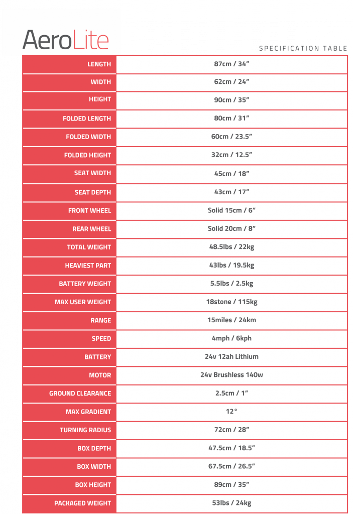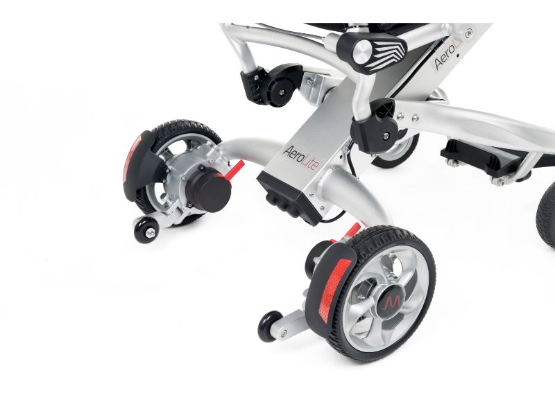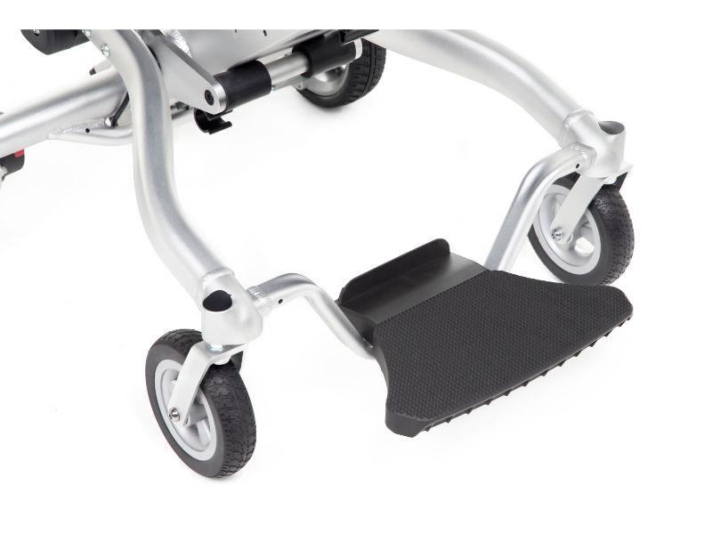 The design was created with ease of use as a priority so with just a simple pull or push the Aerolite is folded or unfolded. With its tension adjustable back, adjustable arm rests and flip up footrest the Aerolite continues to boast some of the features of more advanced powerchairs but at a much lighter weight of just 18kg (20.5kg with batteries) it is even more travel friendly.