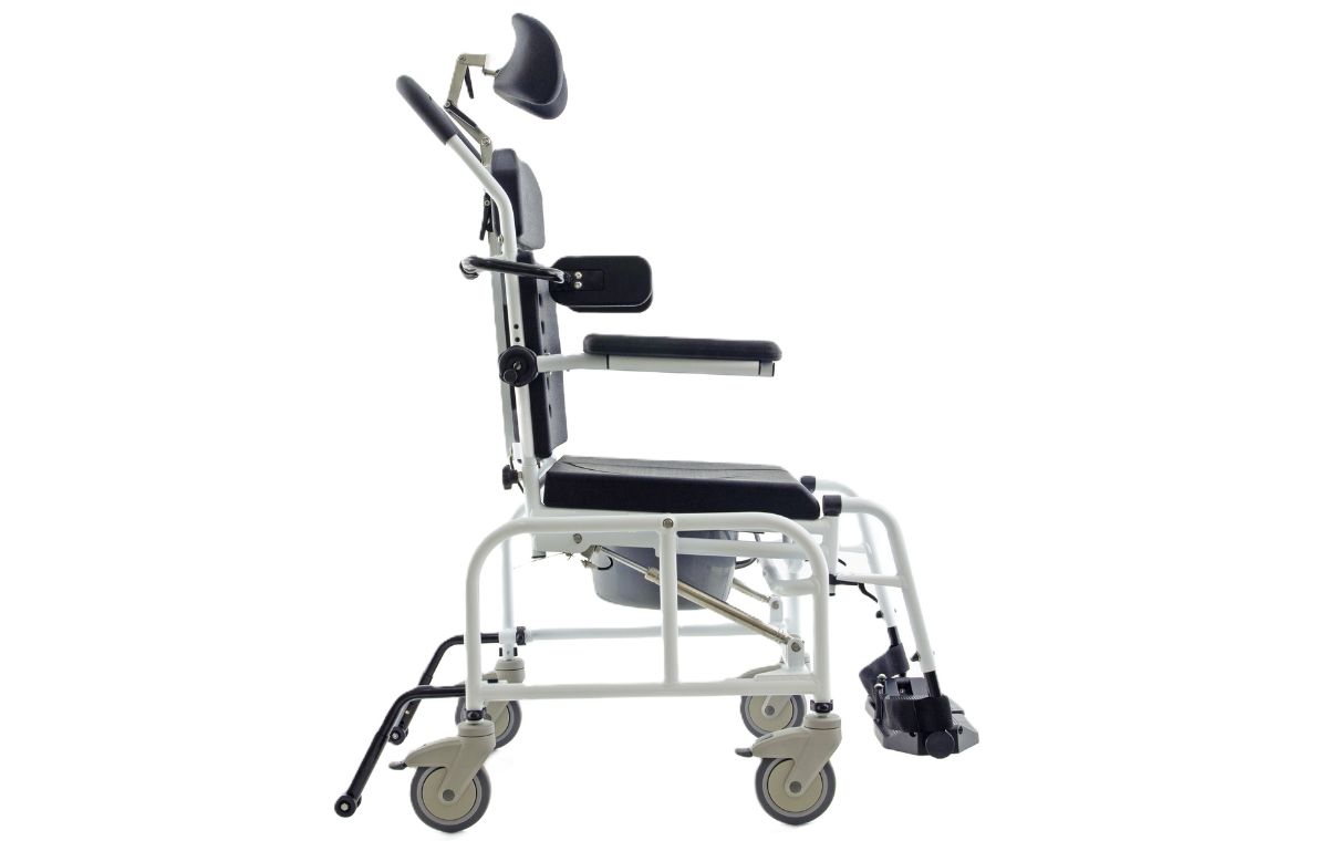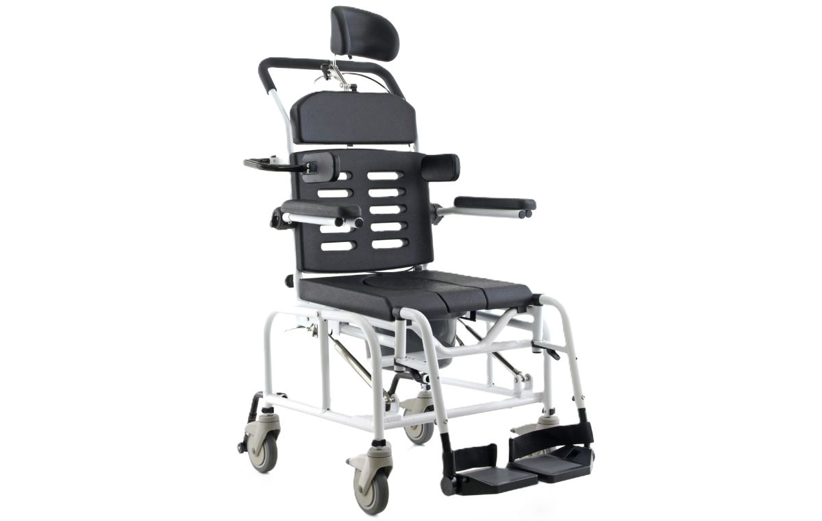 The Alerta Aqua Tilt-in-Space Hi-Lo Shower Commode Chair is for use in Care Homes, Hospitals and homecare. This chair is designed specifically for assisted hygiene routines, showering and toileting.