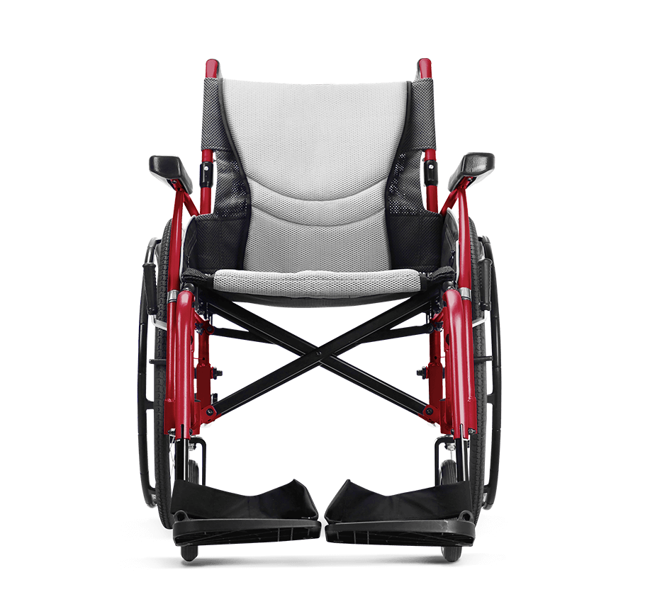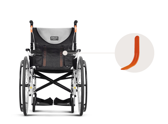 Karma’s Ergo Series lightweight wheelchairs include a set of adjustable curved inserts that provide direct lumbar support and maximize comfort.