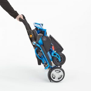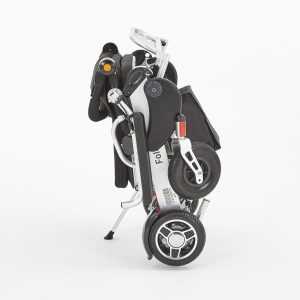 All 3 models can be easily folded for transportation and stood upright and wheeled for storage. The flip up footrest, flip up armrests and a tension adjustable back rest that can be set in different positions all add up to make an amazingly comfortable ride. Also the convenient under seat storage bag, multi position knee protectors and the off board charge cable, to allow the user to charge both lightweight Lithium batteries at the same time when they are removed make the Foldalite range amazingly practical too.
