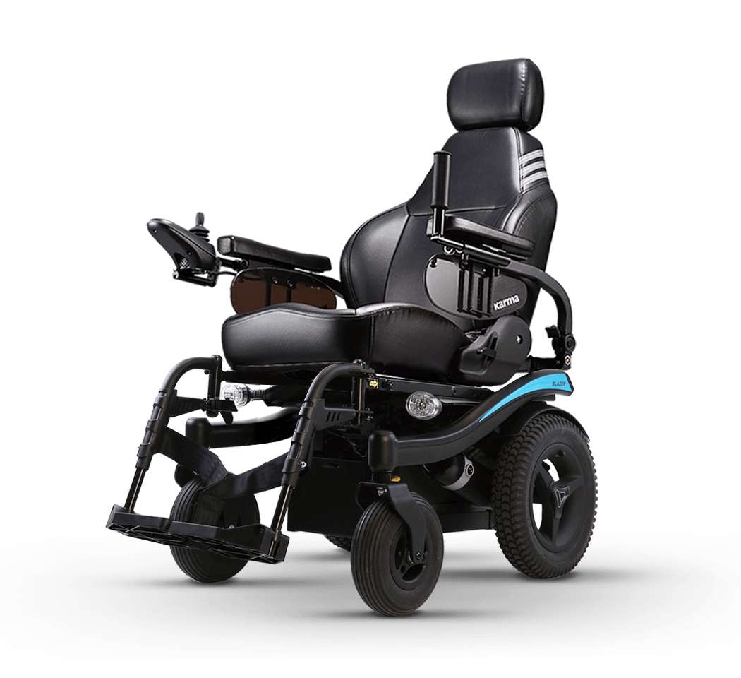 It is important for the wheelchair user to see as well as be seen at night. To improve safety, the Blazer can be equipped with LED headlights and taillights for better night-time visibility.