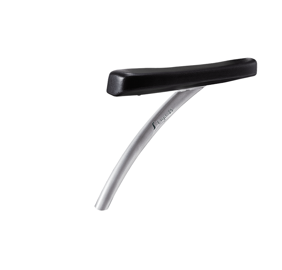 The ergonomic armpad is curved inward according to the way users lean their arms and elbow on the pad. The pad is also narrower at the bottom edges, creating less obstruction for the hands while propelling.