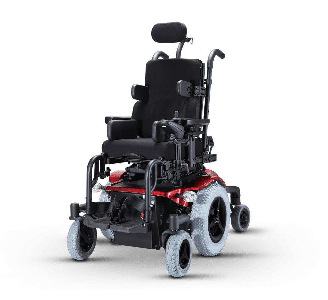 - A compact, high performance indoor-outdoor, mid wheel drive powered wheelchair