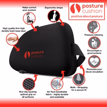 - WHAT IS THIS CUSHION FOR? This cushion offers very firm lower back support, designed by myself after finding that the majority of cushions on the market are too soft to make a real impact on correcting your posture while sitting. The cushion also has multiple strapping and a non-slip back to prevent movement, again a problem I found with car seats.