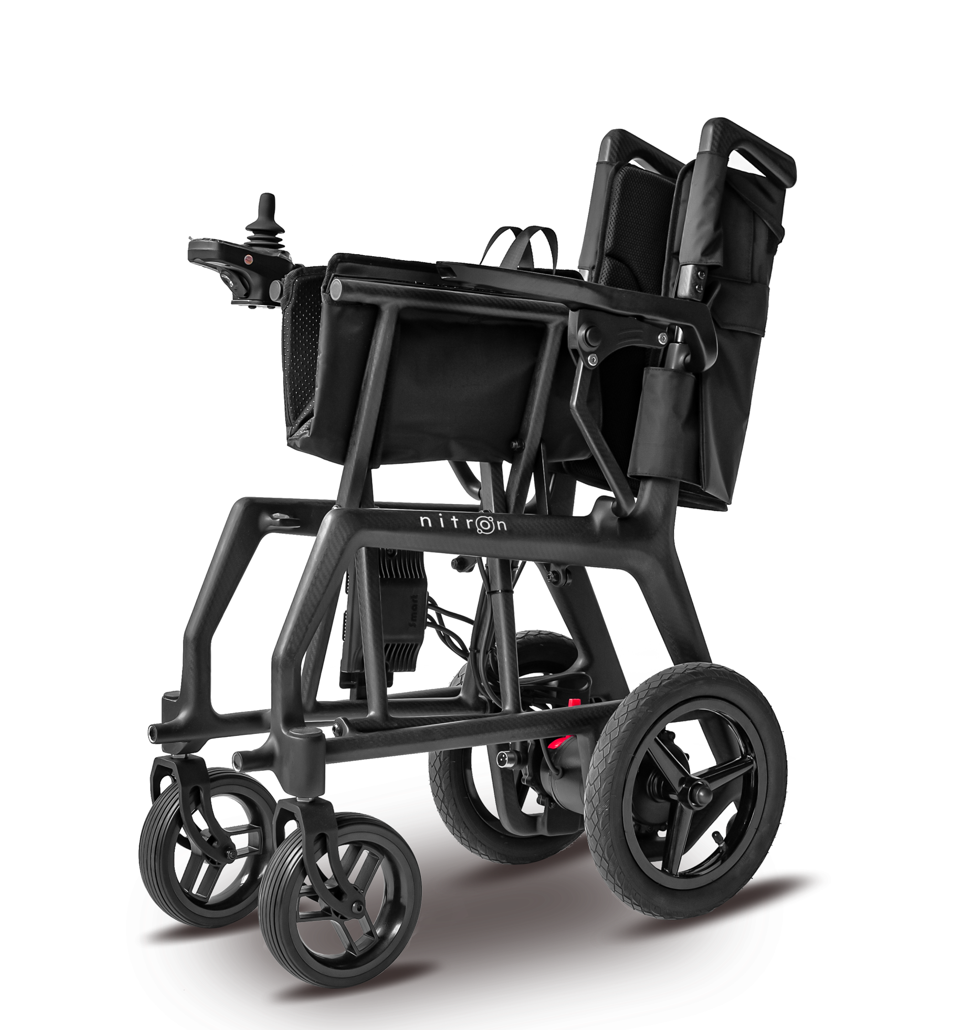 The Nitron Carbon Powerchair redefines portability and performance. At 12.8kg carry weight, it combines the agility of a wheelchair with the power and control of a powerchair, thanks to its advanced digital display control system and intuitive joystick.
