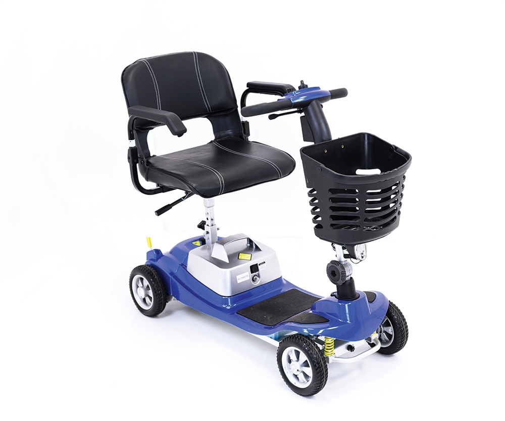 The Illusion is a revolutionary lightweight but strong car portable mobility scooter which can be disassembled into parts for easy lifting, the heaviest part weighing less than 10kg (similar to a bag of shopping). Taking around 30 seconds to reassemble it ensures you won’t be wasting any of your valuable time. It also features an ultra-lightweight lithium battery that is both accessible and simple to remove so you can easily move it to a preferred charging location. A second charging port is located in the tiller which allows for easy access when disassembling is not needed. The scooter also has a powerful LED light for lower light driving conditions. The tiller is height adjustable which provides exceptional legroom even for the taller users. Furthermore, this product is manufactured with aircraft-grade aluminium for optimum durability ensuring top quality. Illusion is also available with a endurance and epic battery pack allowing you to double or triple your travel distance for those longer journeys. Not only super light, the unique shrouding is of contemporary design. The advanced engineered full front and rear suspension complete with the fully adjustable luxury padded seat gives a fantastically comfortable and enjoyable driving experience. Together with the secure-grip delta handlebar, which gives you full control over manoeuvring the scooter.