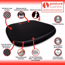 - PAIN RELIEF: Do you sit for long periods at work or in the car? If yes, the Portable Gel Feel Posture Cushion is the perfect choice to improve your wellbeing and health. With its unique gel structure this cushion helps relieve lower back and tailbone pain and can also help reduce the symptoms of sciatica, providing extremely comfortable sitting.