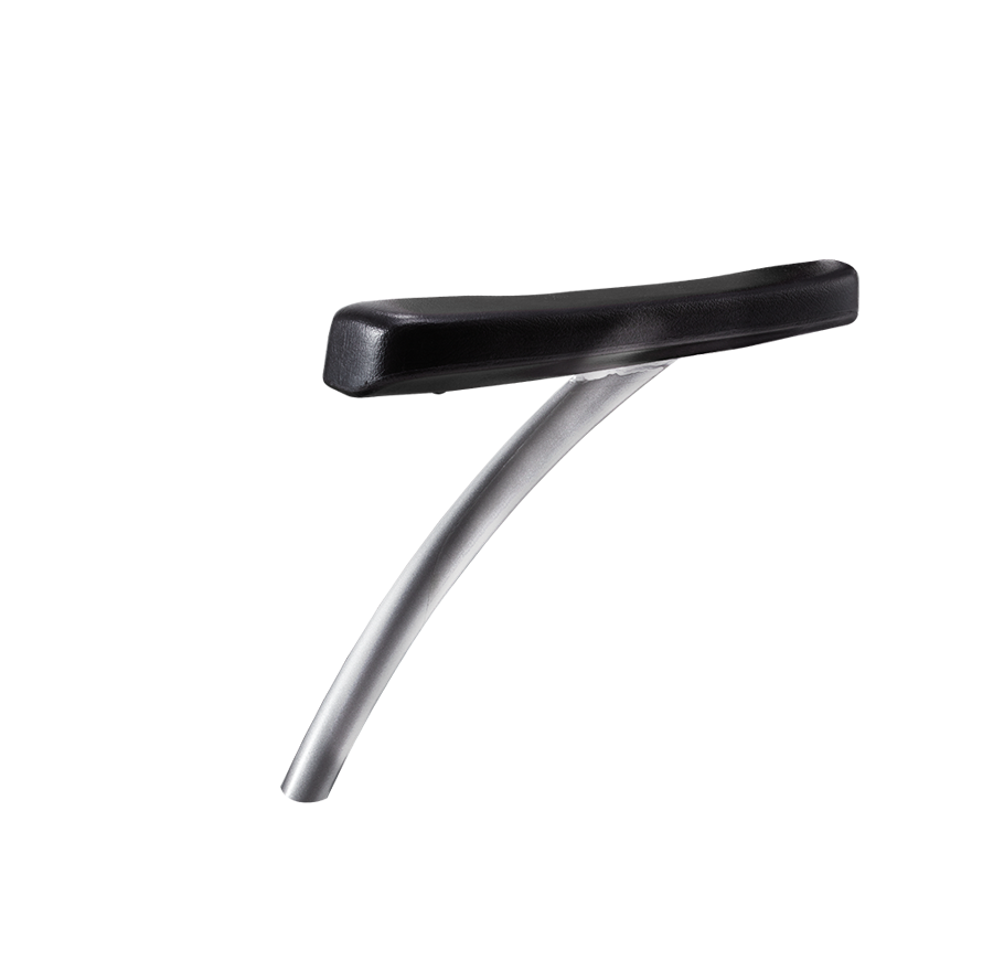 The ergonomic armpad is curved inward according to the way users lean their arms and elbow on the pad. The pad is also narrower at the bottom edges, creating less obstruction for the hands while propelling.