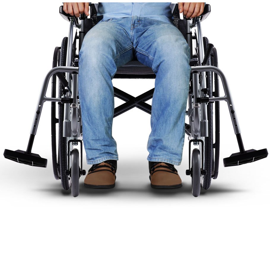 You can choose between the attendant-propelled wheelchair with 14″ rear wheels or the self-propelled wheelchair with 24″ quick-release