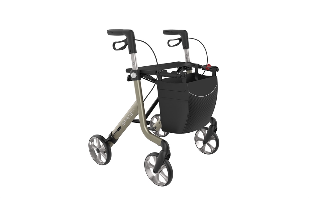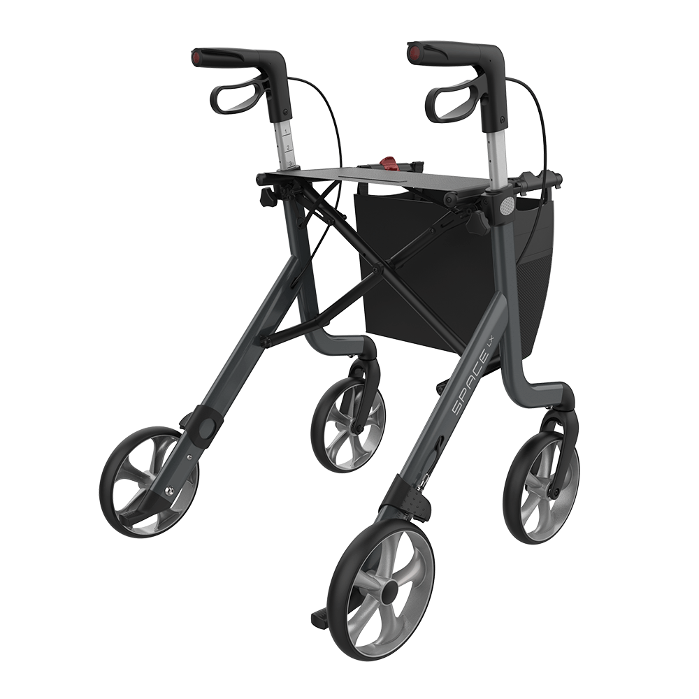 The stylish Space LX has a unique profile ensuring a steady but light frame. Another unique design in the Rehasense line of lightweight rollators. One of the easiest to turn aluminium rollators in the 150 kg users category.