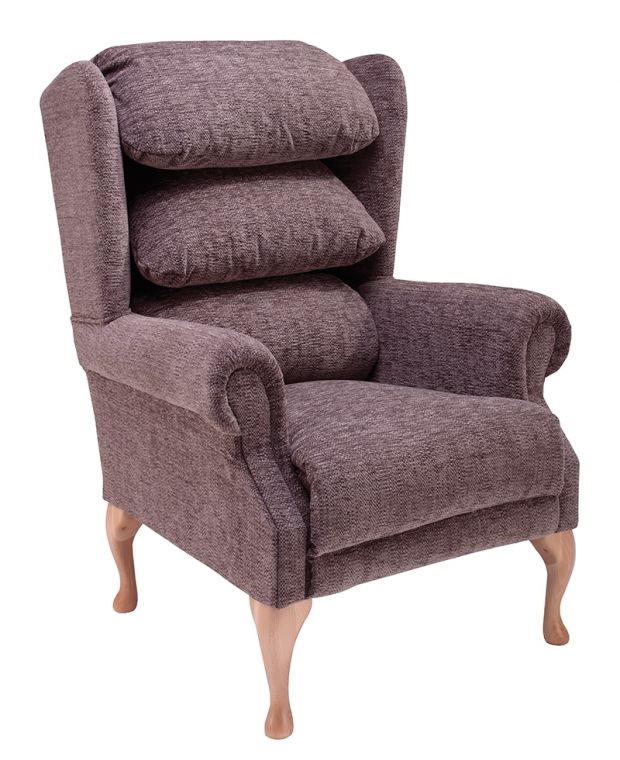 The Cannington Cosi Chair is a traditional fireside chair with elegant scroll arms and wings. With a zipped Waterfall Back design it offers adjustability in the neck, back and lumbar regions. The Cannington is made of birch wood and is available with mahogany, natural or teak wooden Queen Anne style legs.