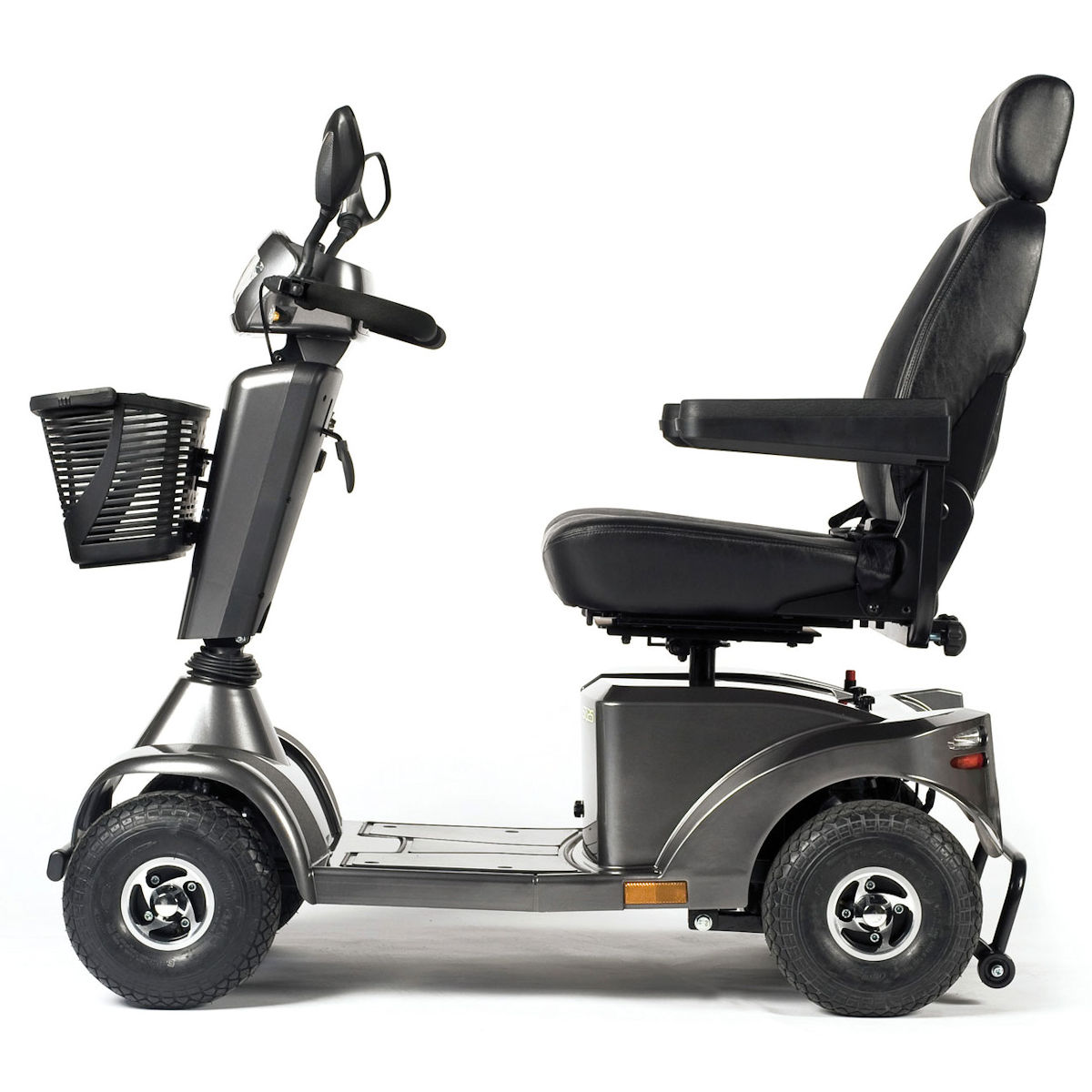 Taking the bright, front/rear LED lights, all-round suspension and combining it with a maximum speed of 8mph, the S425 mobility scooter is fully legal for road use as well as on pavements. As you’ll be travelling on roads, the wheel height (30cm) will help to tackle those usual outdoor obstacles with ease. Fancy venturing a little further? The large battery size of 55Ah will help to power your way. Plus with the S425’s unique carbon-metallic colour, heads will turn just as easily as your S425 does!