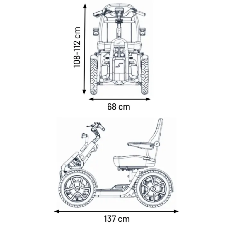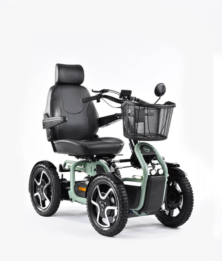 The STERLING S800 by Scoozy effortlessly transitions you from biking to a mobility scooter, with fimilair bike-style handlebar controls, 4 large wheels, advanced suspension, and a lithium battery. Engineered for stability and comfort on both urban streets and nature trails, the S800 delivers a modern and cool mobility solution.