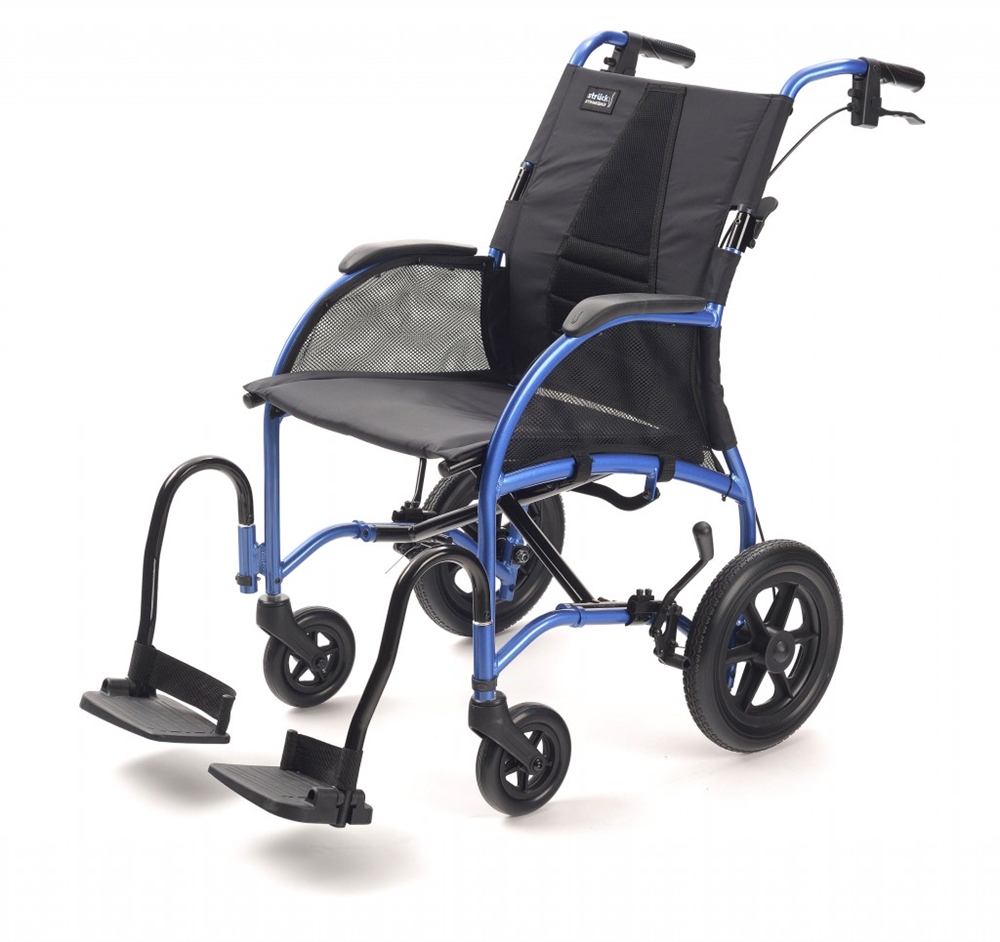 The Strongback wheelchair has also been designed with the carer in mind, folding in a matter of seconds and requiring minimal storage space. The backrest folds completely flat against the frame, as do the footrests which easily fold and lock out of harms way, no need to detach as per traditional wheelchair design. The push handles are spaced wide apart to offer the correct stance for maximum control when pushing. Puncture proof tyres and attendant controlled brakes finish off the impressive specification. Lightweight aluminium construction at just 11.3kgs means it can be lifted and transported without back or muscle strain.