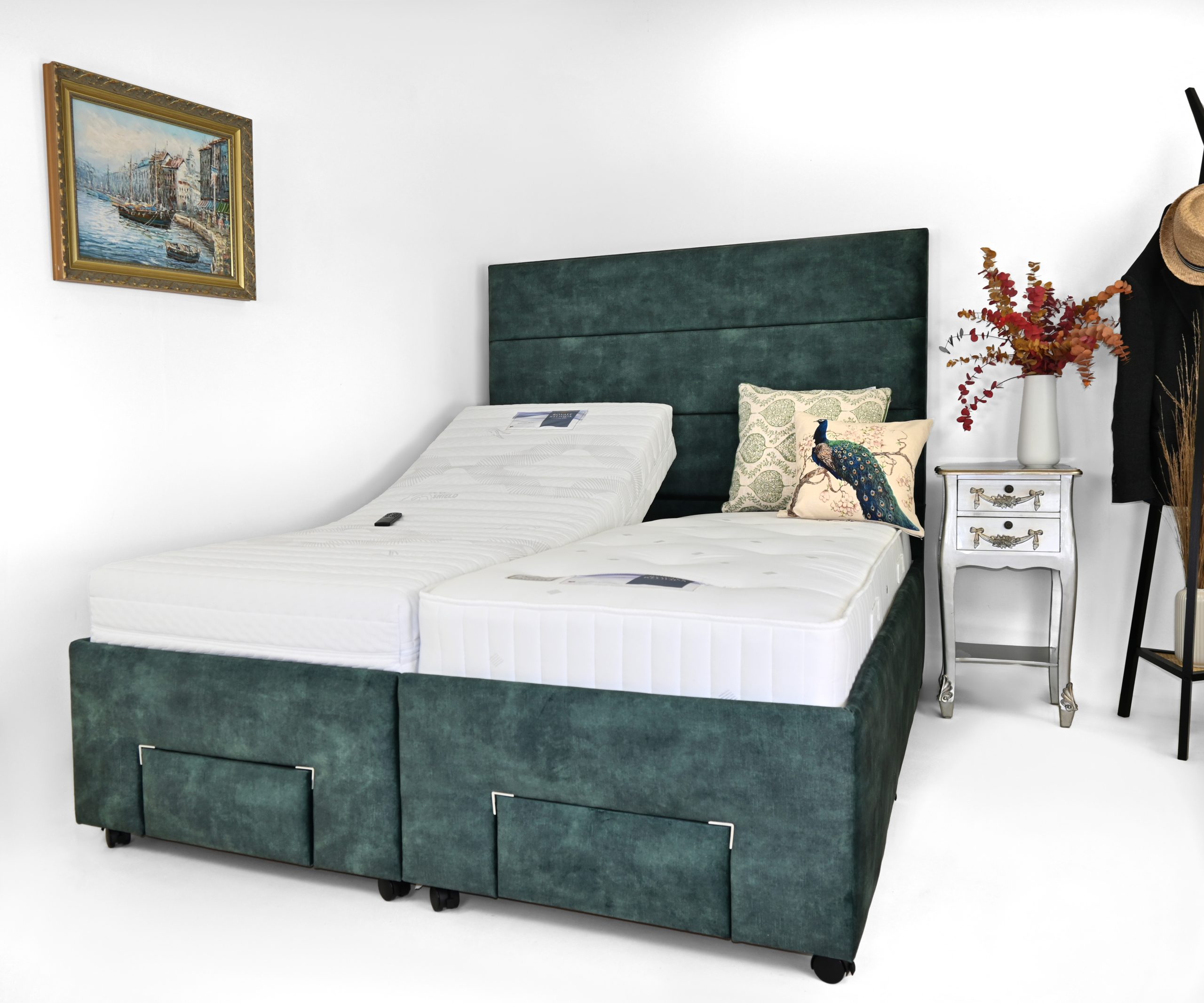 The luxury Valencia, with its deep padded divan base and twin-locking castors combines quality, style and functionality. The unique base design holds the mattress securely within all four sides of the base and removes any risk of mattress sliding either sideways or off the end of the bed. The optional storage drawers can be chosen in a range of formats to suit your bedroom layout. A five-way profiling action is fitted as standard and powered with a quiet and smooth motorised operation with an easy-to-use hand control. Both the top and bottom of the bed can easily be adjusted for comfort, movement in and out of bed and to aid circulation. Paired with the unique adjustable tension, this allows for a comfortable rest every time. The 25 stone capacity ensures anyone has access to this stylish design. This home-style bed assists sufferers of a range of mobility restrictions. The range of profiling positions aids many users, including leg elevation which helps to reduce fluid and pressure in legs and ankles, and the sitting position which helps ease respiratory conditions.