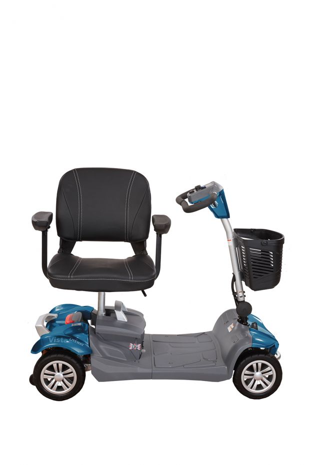 Introducing the exclusive Rascal Vista LiTWEWAY 27Ah with State-Of-The-Art Lithium Ferro-Phosphate Battery. This mid-size aluminium scooter benefits from the quick release feature it dismantles into a few easy-to-lift sections for transporting in your car. The compact & slim-line style offers a spacious footwell & plenty of legroom yet it is still extremely robust with generous turning manoeuvrability, making it ideal for everyday use.