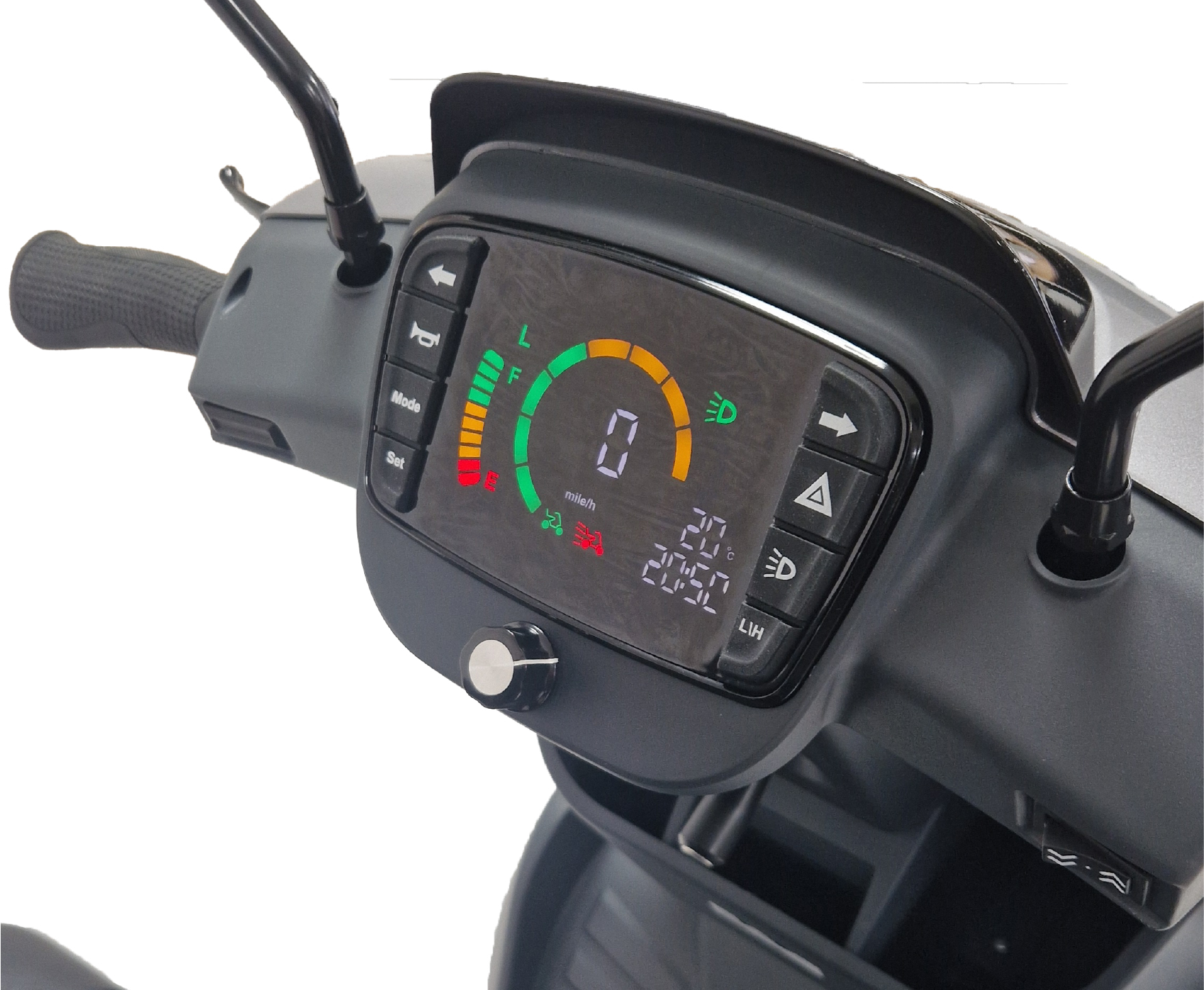 The Xcursion boasts a cutting-edge, modern design complete with LED headlights and dynamic sequential indicators, ensuring you travel safely and in style. Its all-round suspension and soft pneumatic tyres deliver a smooth, comfortable ride, while the padded, adjustable captain seat and tiller provide personalised comfort.