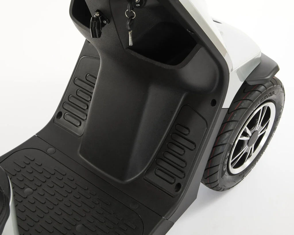 Choose between either pneumatic or solid tyres, both offering excellent grip and stability across various terrains. With generous ground clearance and highly comfortable all-round suspension, the Xquisite effortlessly navigates uneven surfaces. Its spacious, swivelling captain seat enhances comfort, while the ergonomic delta handlebars provide precise control. Perfect for outdoor exploration and off-road adventures.